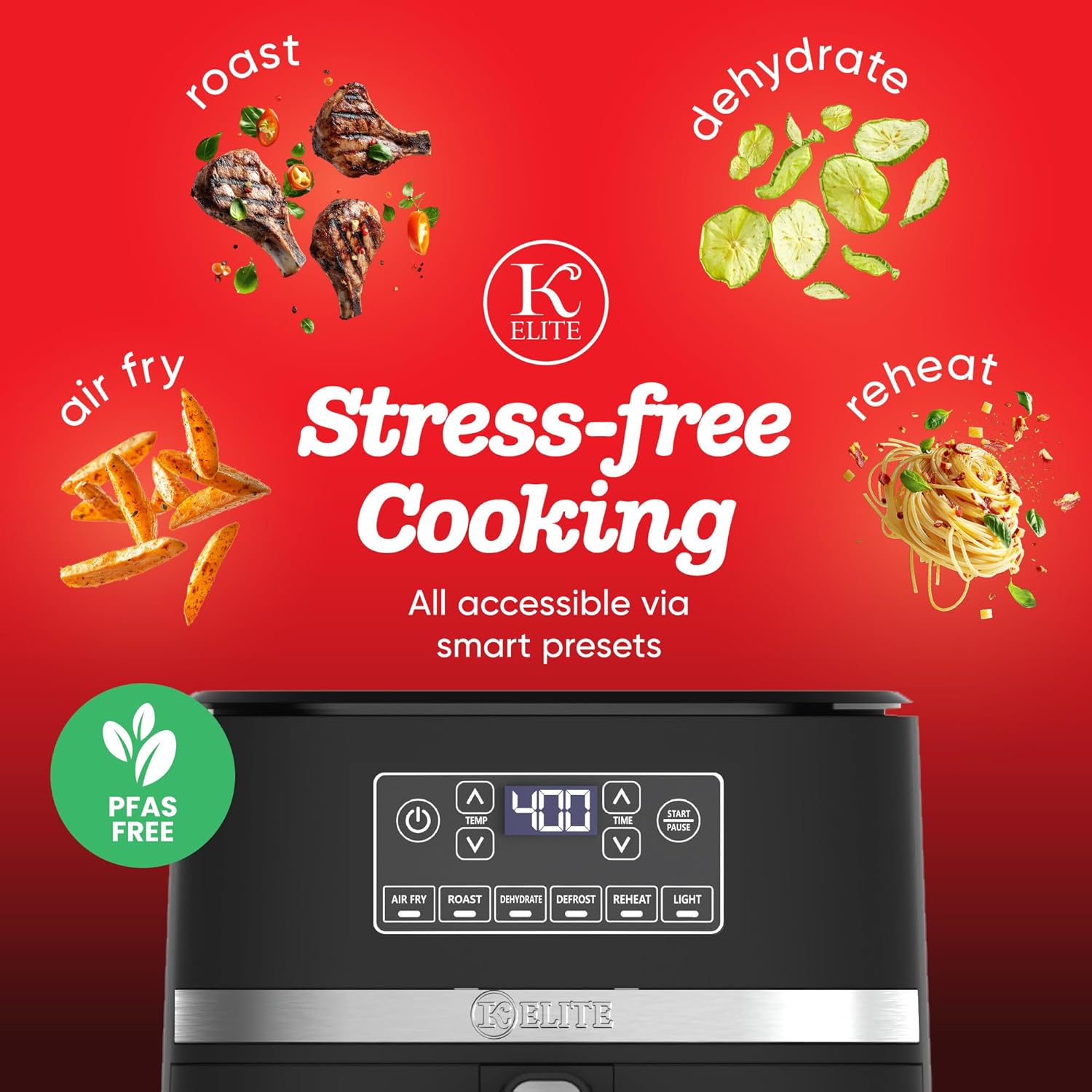 - Multi-Cooking Functions: Choose from Air Fry, Roast, Dehydrate, Defrost, and Reheat with one-touch precision for effortless versatility in preparing healthier, family-friendly meals.